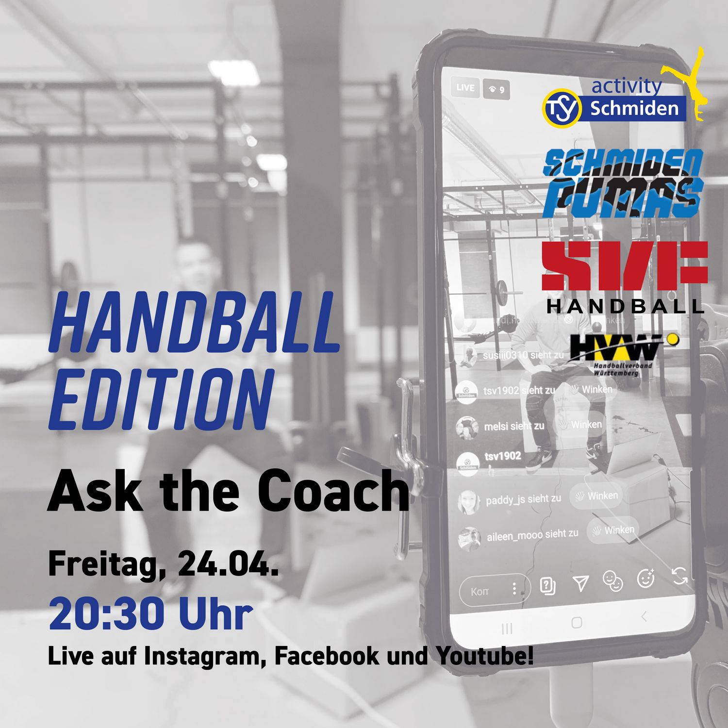 Ihr könnt über alle Online-Kanäle des TSV teilnehmen. Über Instagram klick man einfach auf den LIVE Button und ist sofort dabei.
