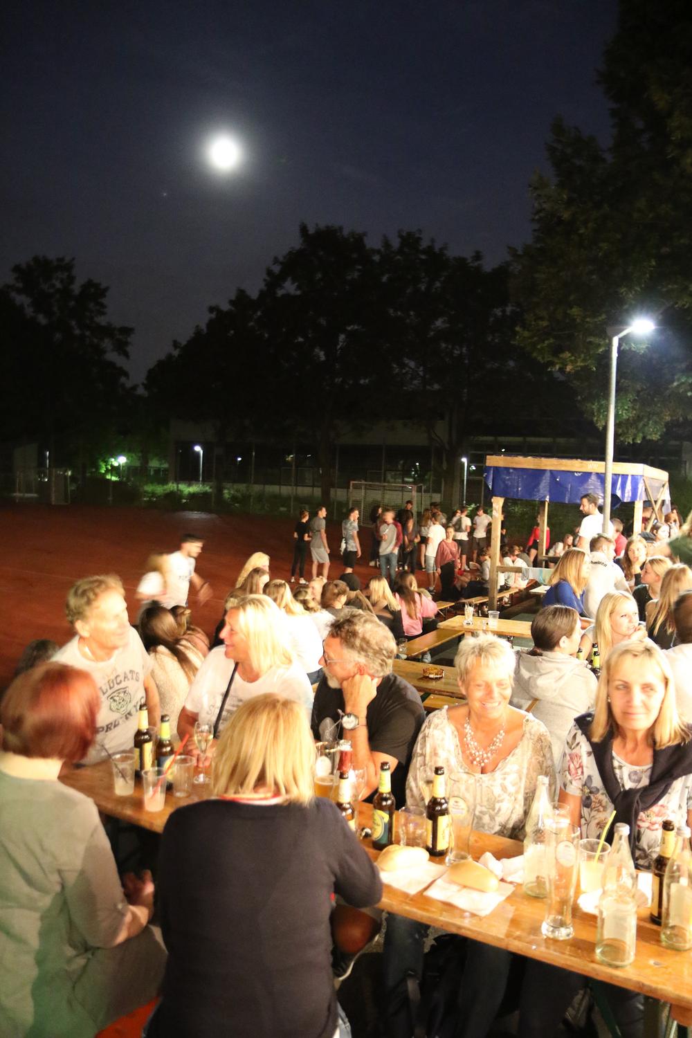 Zum Abschluss des Ortsturniers drängten die Ambitionen den Spaßaspekt zurück. Davor war mehr als eine Woche das „Ortse“, wie es liebevoll genannt wird, das Zentrum von sportlichen Leistungen und Geselligkeit. Feucht-fröhlich wurde es am Freitag aber nicht nur für die Erstplatzierten – für die Neulinge namens Flamongos, die direkt die Profi-Mixed-Klasse gewannen, für Juventus Urin, das mal wieder in der Jubiläumsklasse vorne lag, sowie für Perlweiss Oeffingen, den Gewinner der Mixed Klasse –, sondern für alle. Das Team, da sich Villa Samenbank nennt, hatte einen kleinen Swimming-Pool aufgebaut, in dem im Laufe des Abends fast jeder Abkühlung fand. „Einige, so heißt es gerüchtehalber, gehen ansonsten auch mal gemeinsam unter die Dusche“, sagte Jonas Conrady, der den traditionellen Mix aus ernsthaftem Wettstreit und fröhlichem Wetteifern mit seinem Bruder Rafael, Sebastian Bürkle und Fabian Engelhart organisiert hat.