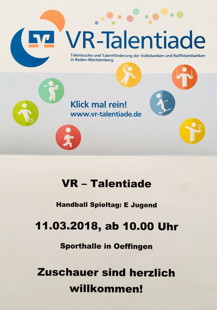 In Zusammenarbeit mit der Volksbank Stuttgart wird dieser VR-Talentiade-Spieltag ausgeführt. D.h. es werden auch Sichter aus dem Handballbezirk Rems-Stuttgart vor Ort sein, um Kinder für den Bezirksentscheid in der VR-Talentiade zu sichten. Diese Kinderdürfen sich beim Bezirksentscheid mit weiteren Talenten aus den anderen Bezirken messen.